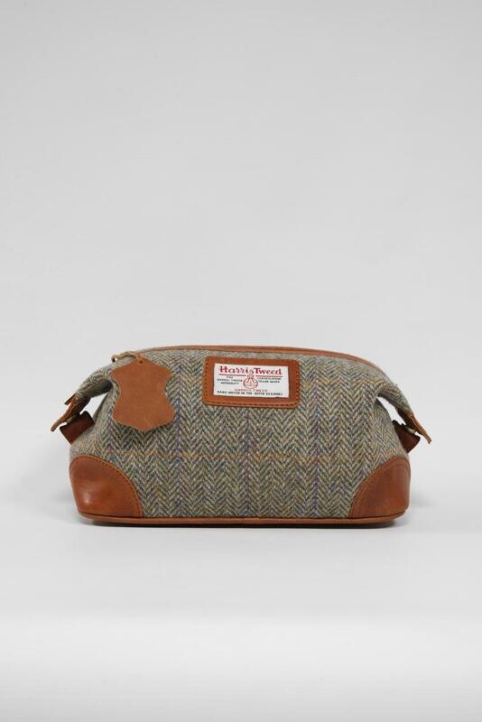 Harris Tweed Toiletries Bag | A0238 (Tan Leather)